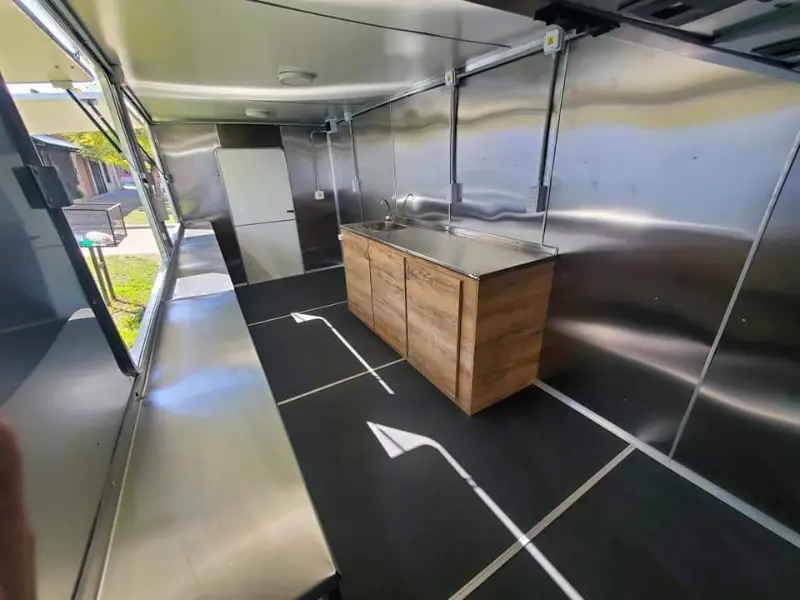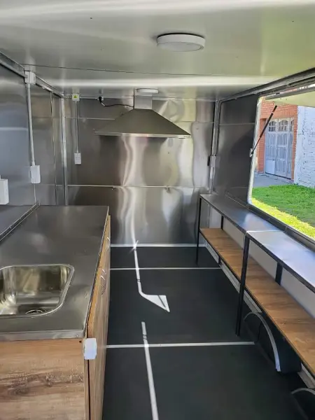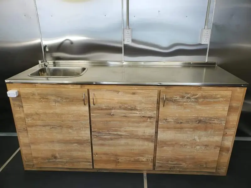 - Mesada de acero inoxidable con bacha e instalación de agua, grifería, depósito de agua.